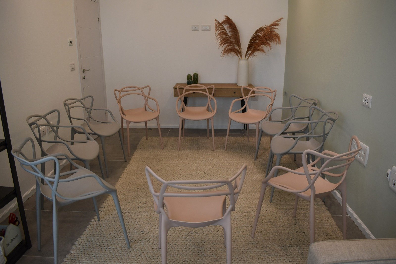 חדר "רוני". חדר מעוצב לטיפולים שיח, שולחן גדול עם שני כסאות, מתאים גם לטיפול דידקטי אבחונים ולימוד.